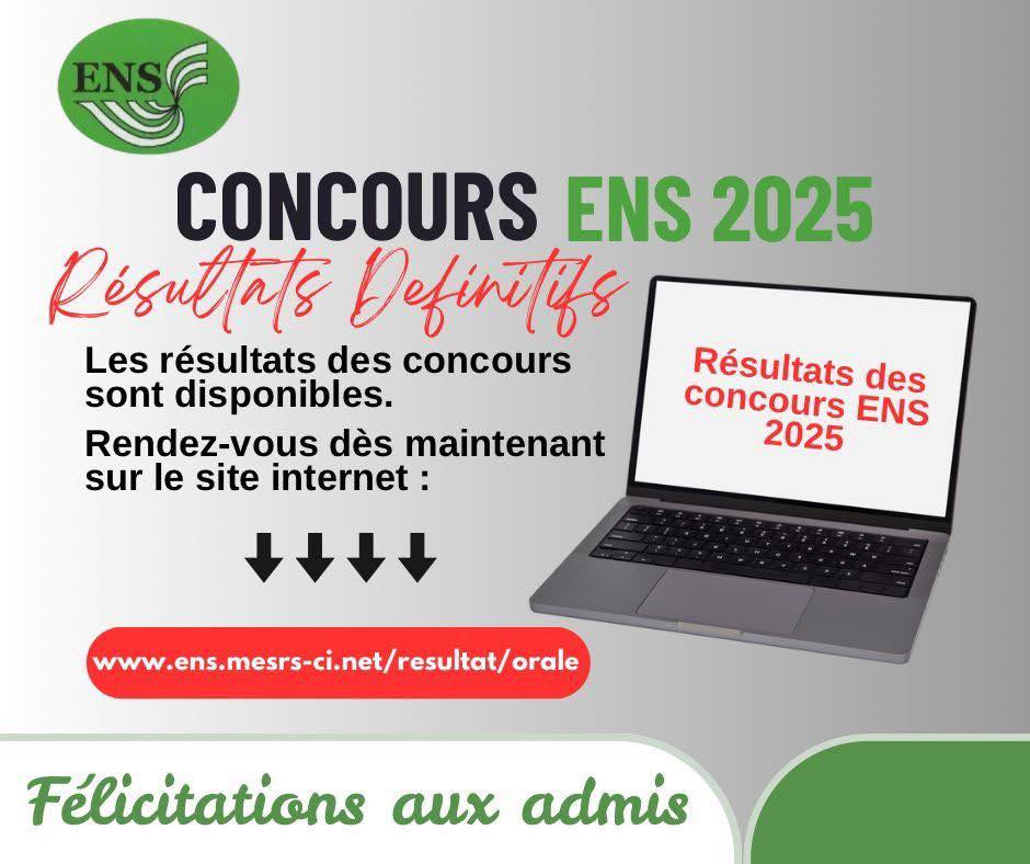 Les résultats définitifs des concours d’entrée directs à l’ENS session 2025 sont désormais disponibles en ligne.