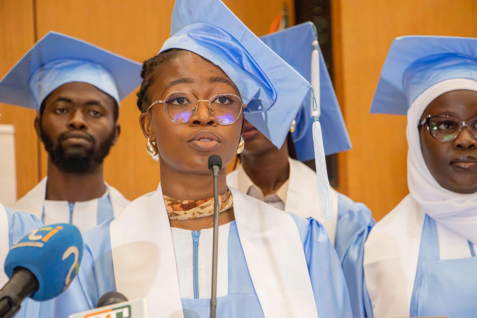 En présence de leurs parrains, Hilaire Marcel LAMIZANA Dg du port de San Pedro, et Madani MAKY TALL, Dg de l’entreprise immobilière "Envol", la porte-parole de cette première promotion des diplômés, AKA Lauraine, étudiante inscrite en Master 1, a lndiqué que c’est un moment qui marque la fin d’une étape, mais le début d’une autre. « Ce diplôme est la preuve tangible de nos efforts et de notre dévouement. Nous ne célébrons pas seulement la réussite académique, mais ce que nous sommes devenus. L’USP nous a appris à devenir grand, à aller au-delà de nos capacités. Cet accomplissement, nous le devons au Président de la République pour sa vision mais également au ministre de l’Enseignement Supérieur et de la Recherche scientifique pour sa politique au niveau de l’Enseignement supérieur», a-t-elle dit avant de remercier le Président de l’UPSP pour sa politique sociale mise en place, et qui a permis l’obtention de ces résultats.